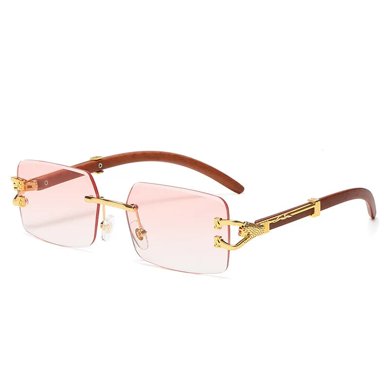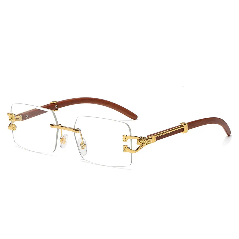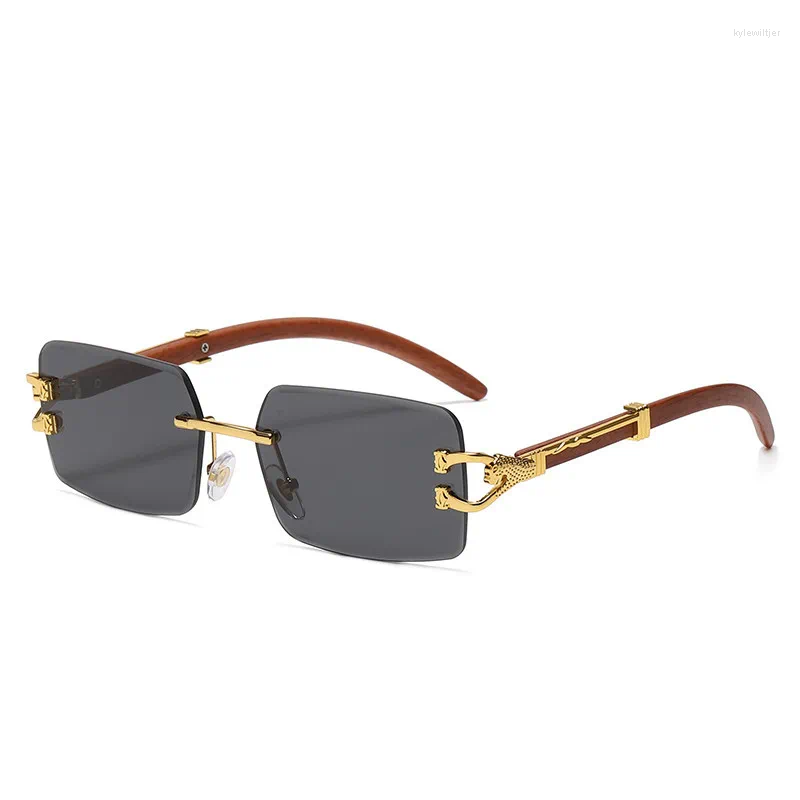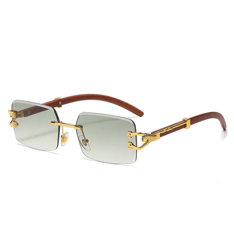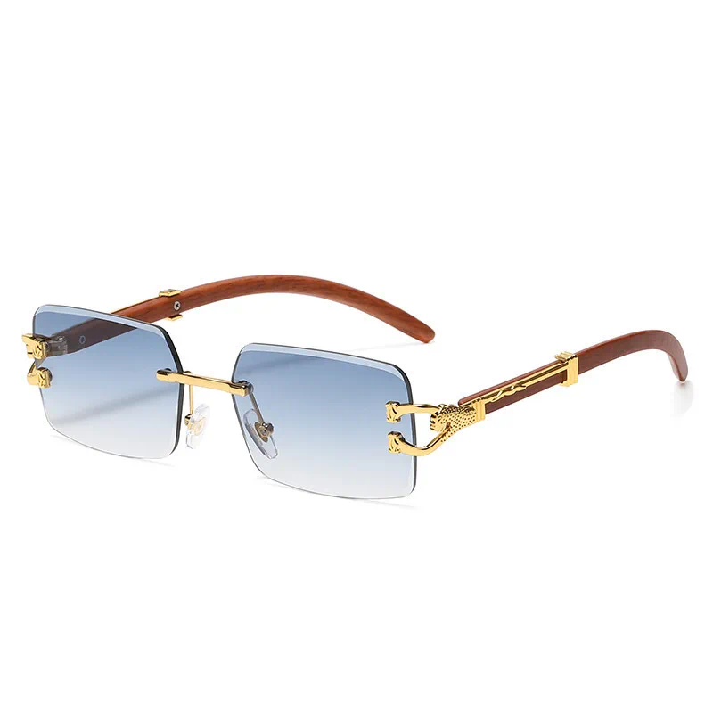 Óculos de sol clássico vintage sem aro quadrado leopardo cabeça mulheres homens designer de moda viagem madeira metal óculos de sol