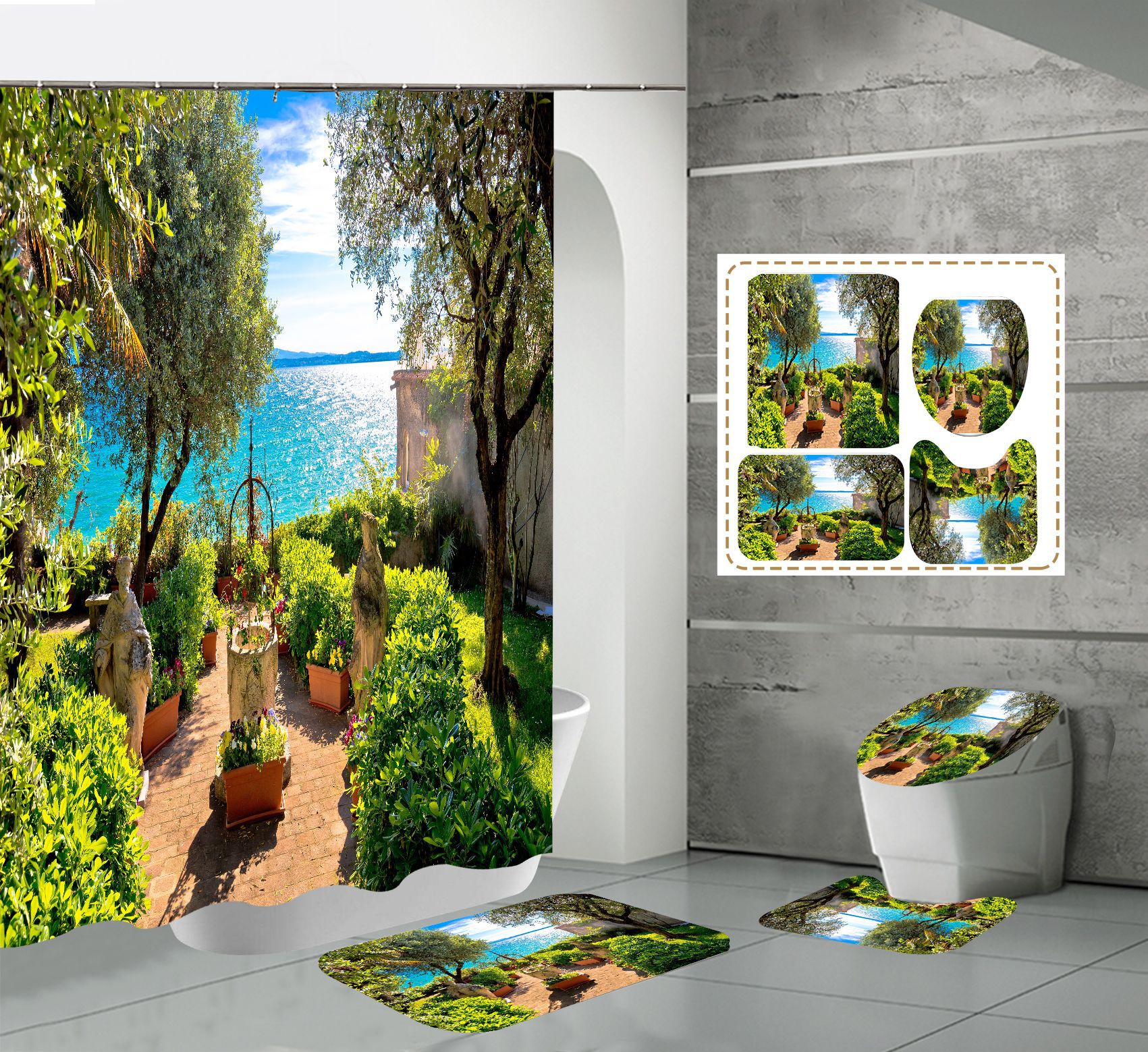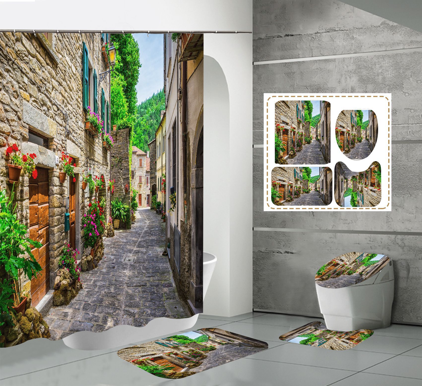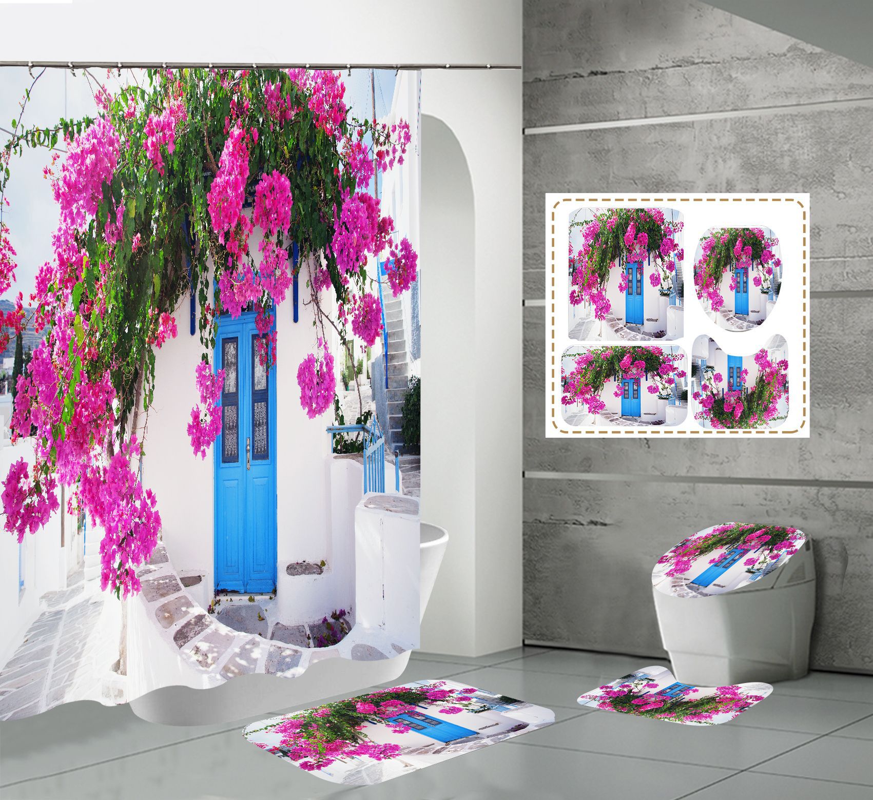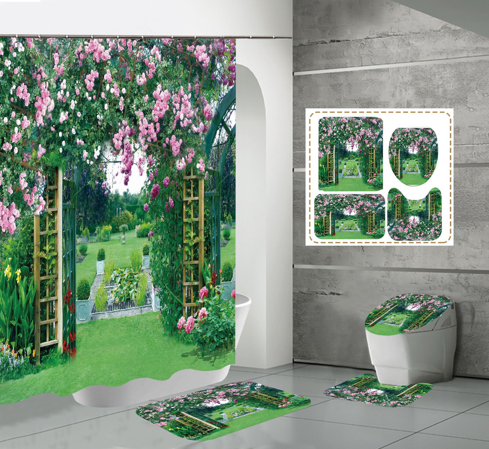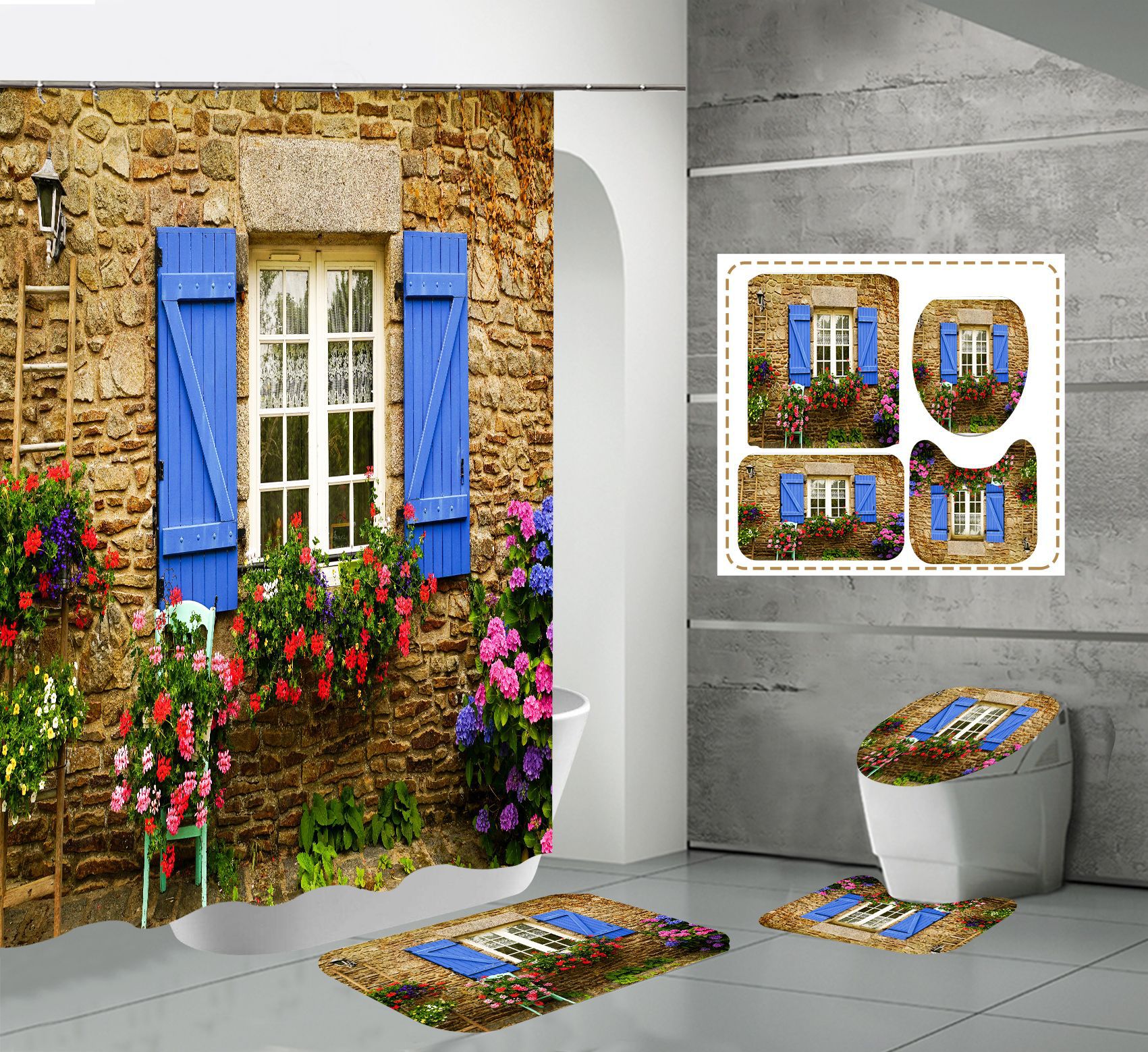 Conjunto de quatro peças cortina de chuveiro tapete em forma de U capa de banheiro 700g