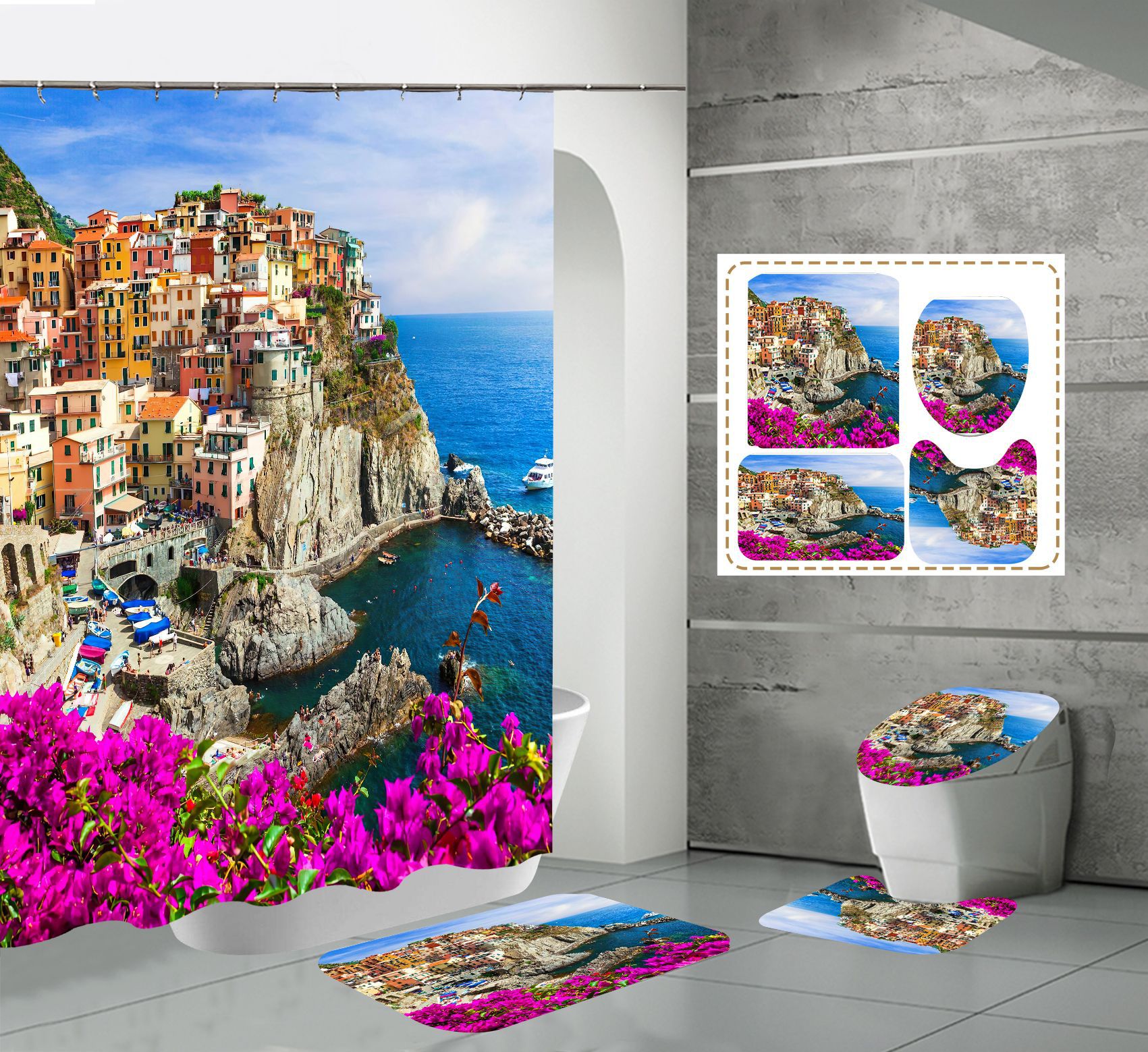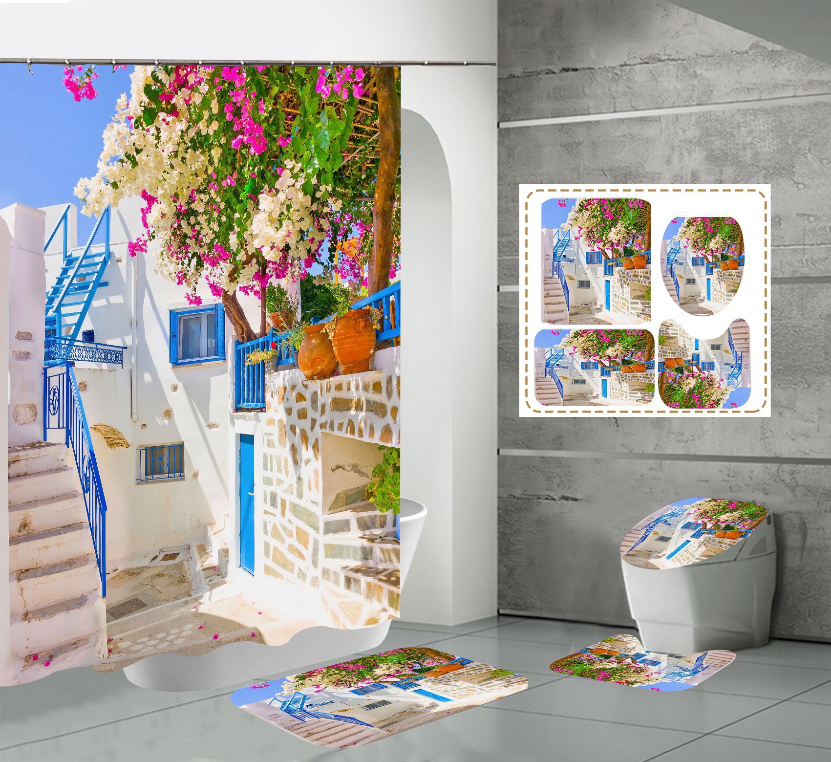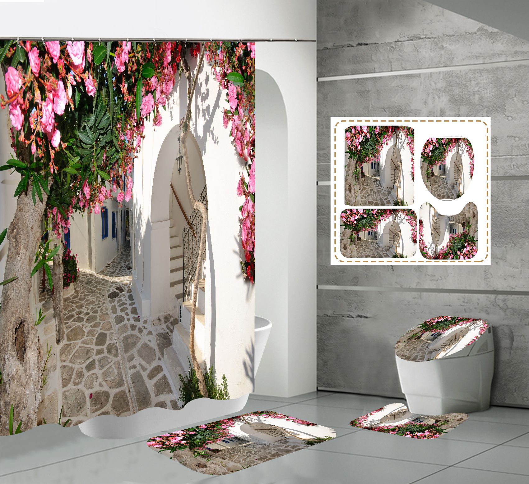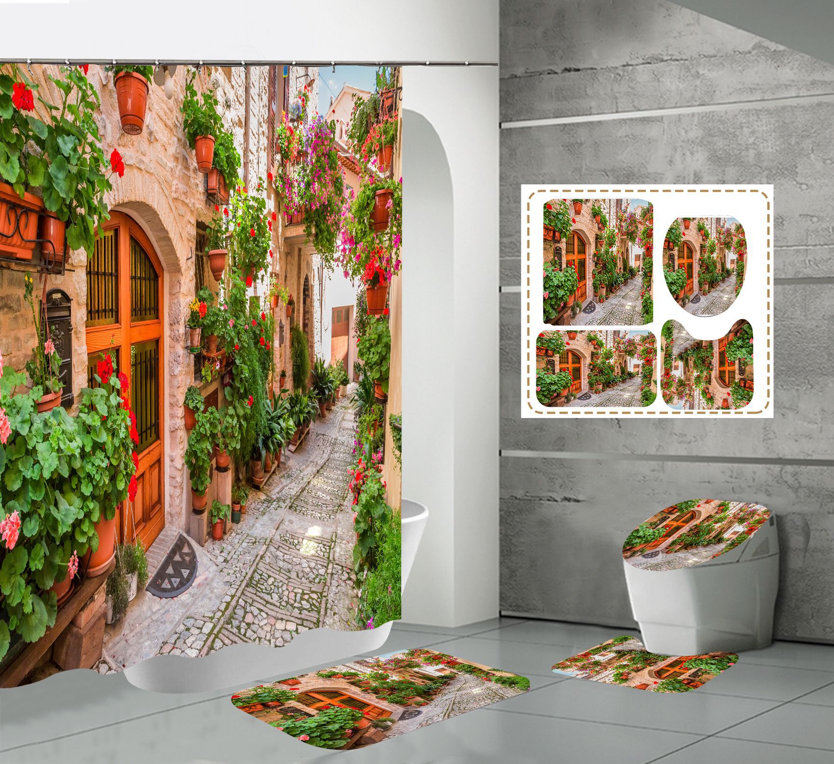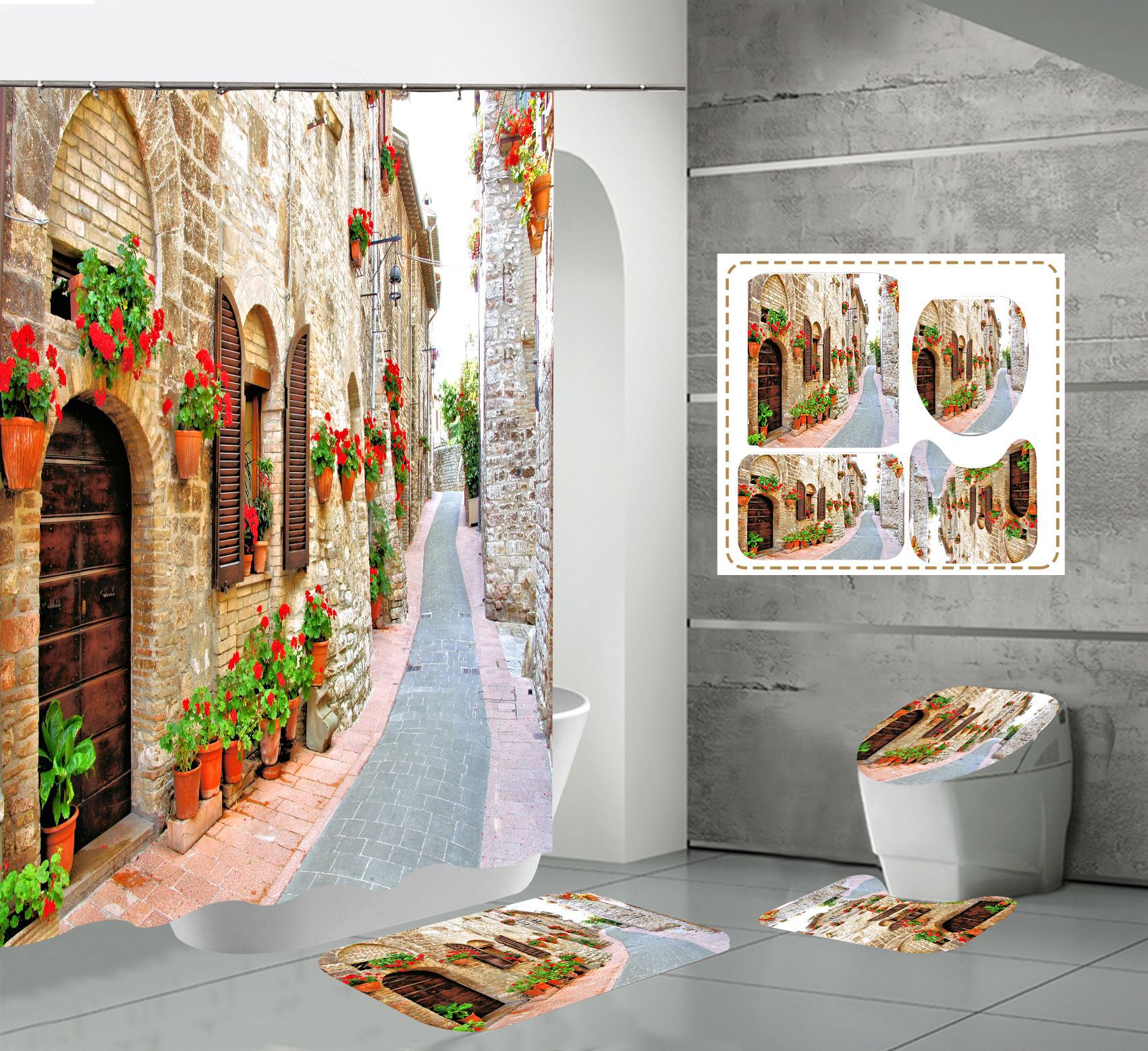 Conjunto de quatro peças cortina de chuveiro tapete em forma de U capa de banheiro 700g