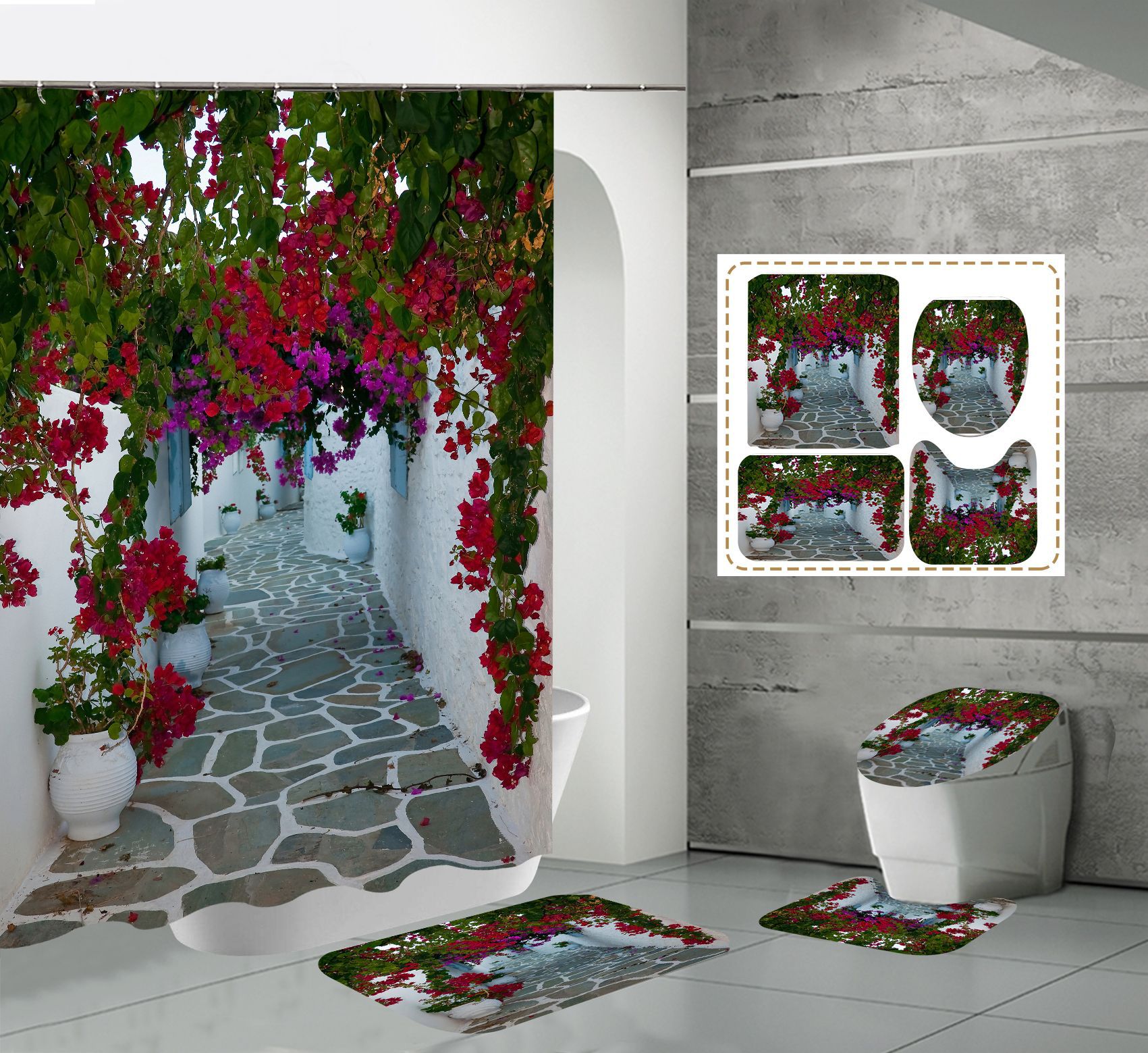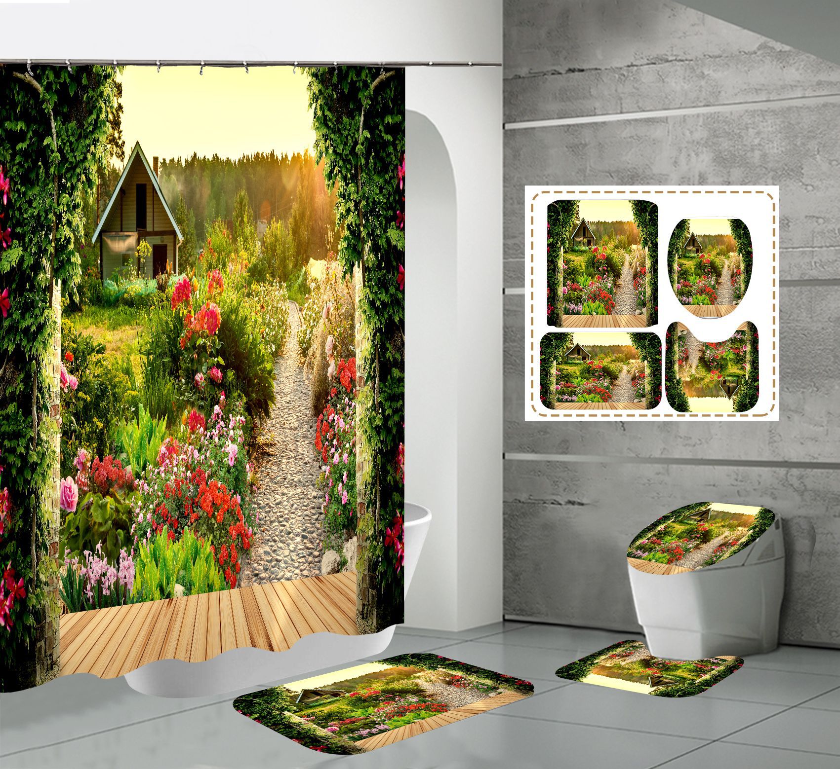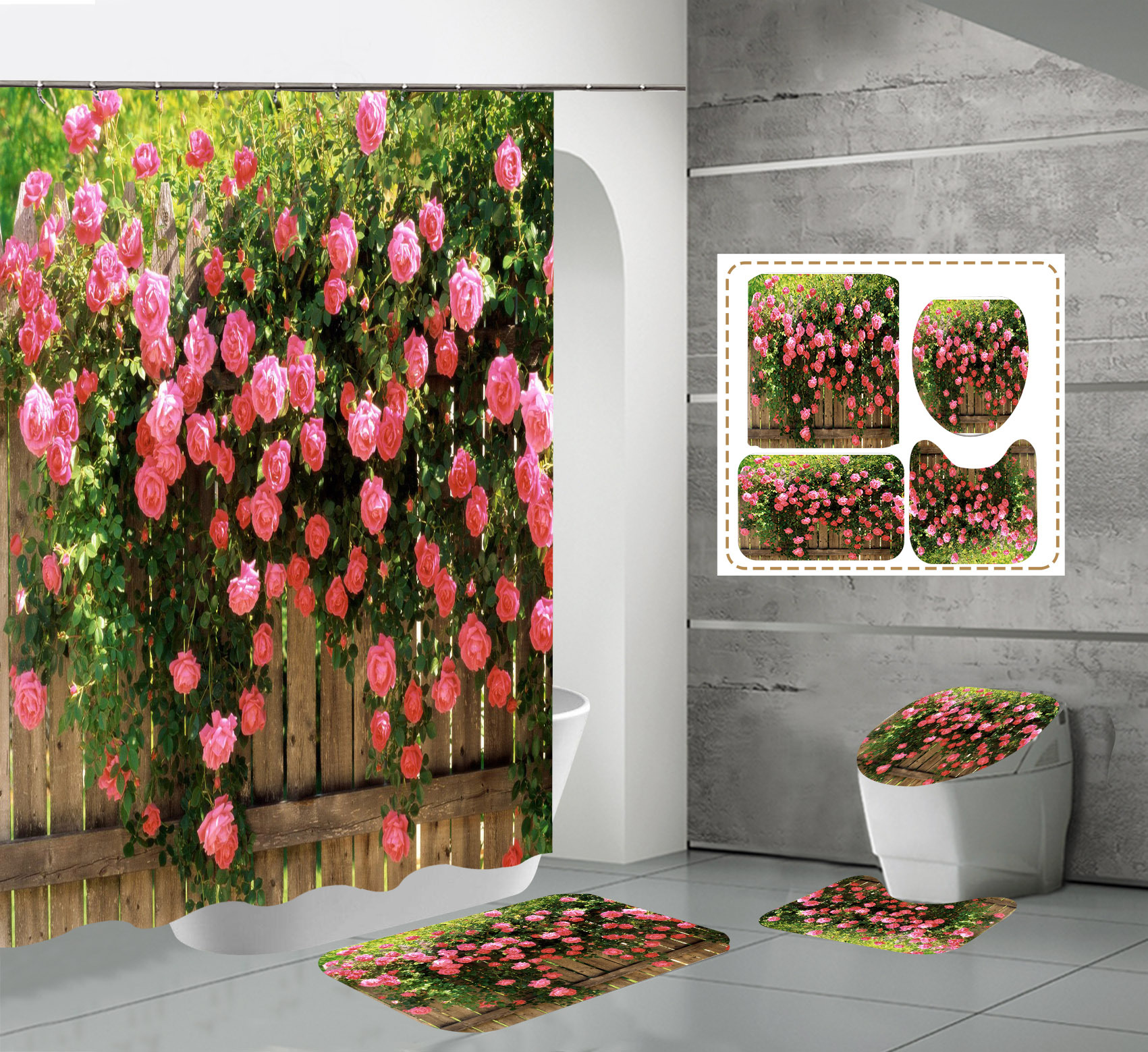 Impressão digital de alta definição estilo quente série de flores de parede à prova dwaterproof água poliéster conjunto de cortina de chuveiro para banheiro
