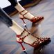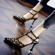 Roman hollow toe design with T-shaped rivets and T-shaped buckle, sandals with pointed toes and thin heels, banquet high heels for women