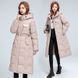 Roupas femininas Casaco longo de plumas com cinto, corte slim, jaqueta quente de inverno com capuz, agasalho casual (disponível em bege, preto, cáqui, marrom)