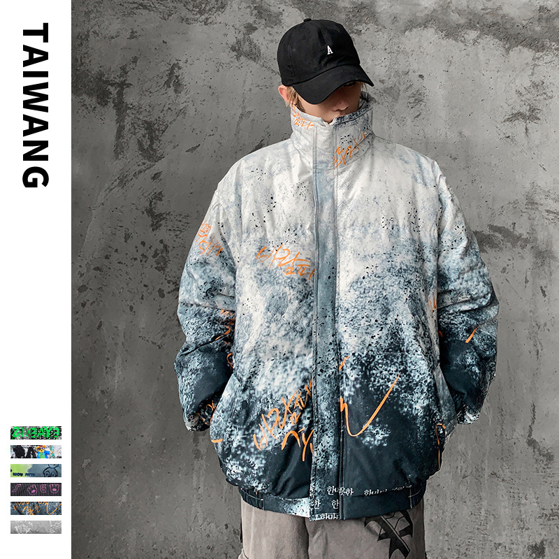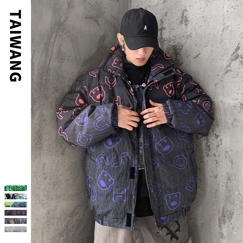 Roupas masculinas Moda Urso Seda algodão Jaqueta Masculina 24 Nova Inverno Jaqueta Juventude Floco de Neve Estampa Seda algodão Jaqueta