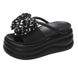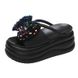 Sandálias de praia com lantejoulas e laço, sola grossa, moda verão, nova moda, bico redondo, tira única, chinelos para áreas externas