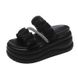 Sandálias femininas de plataforma, modernas, de verão, com bico redondo, estilo fada, tira única, com strass, pantufas de cunha