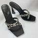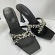 Sandálias femininas de seda com bico quadrado e salto agulha - Tira de cristal e salto alto com abertura frontal