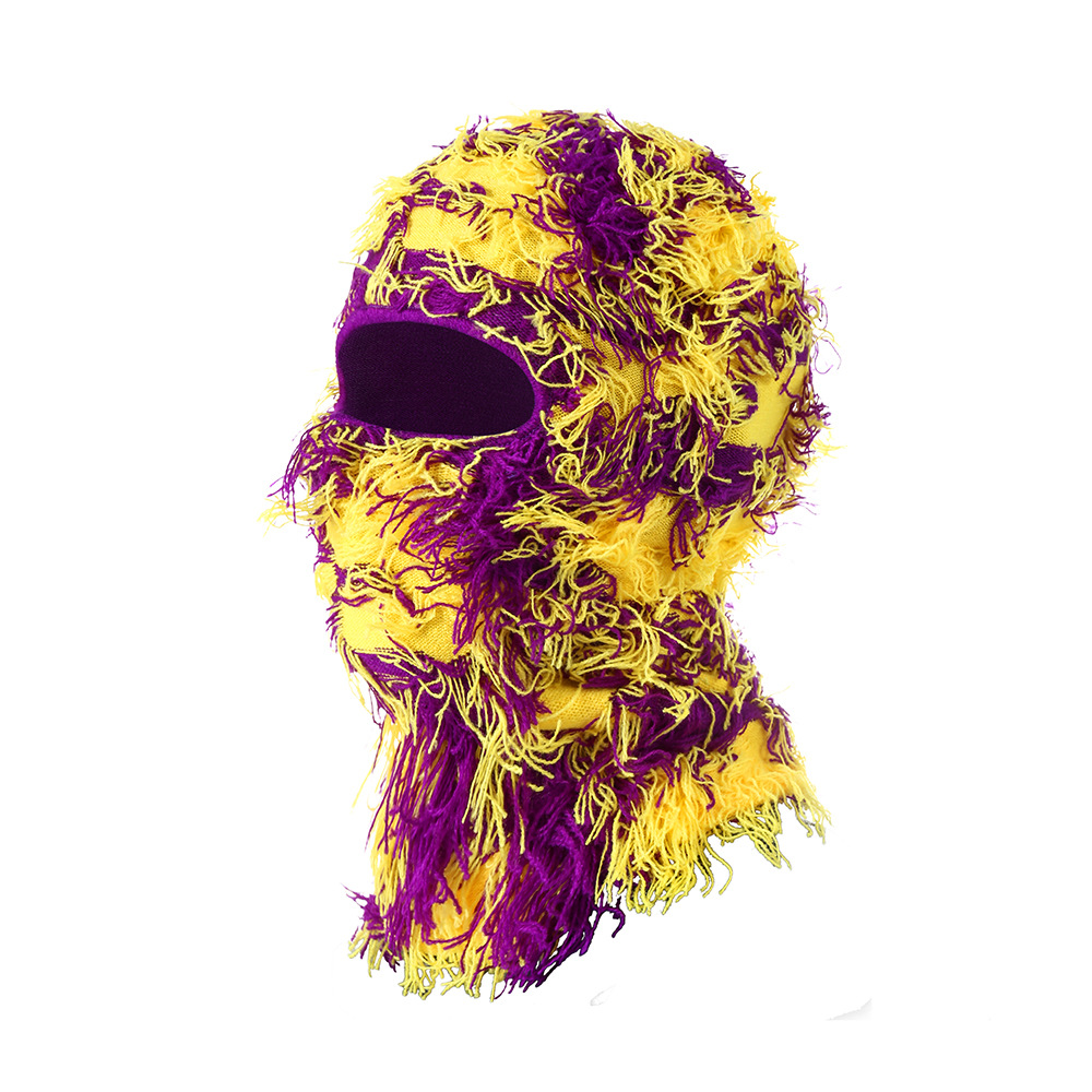 Conjunto de cabeça de máscara térmica de malha, camuflagem personalizada, jacquard, touca de cabelo com furo único, corta-vento de esqui