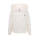 Casaco cardigã feminino de tricô com capuz e gola de pele macia e delicada, novo modelo folgado e versátil com zíper para o outono.