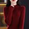 Suéter feminino de lã, slim stretch, manga comprida, clássico, cor sólida, meia gola alta, camisa com base combinando por dentro