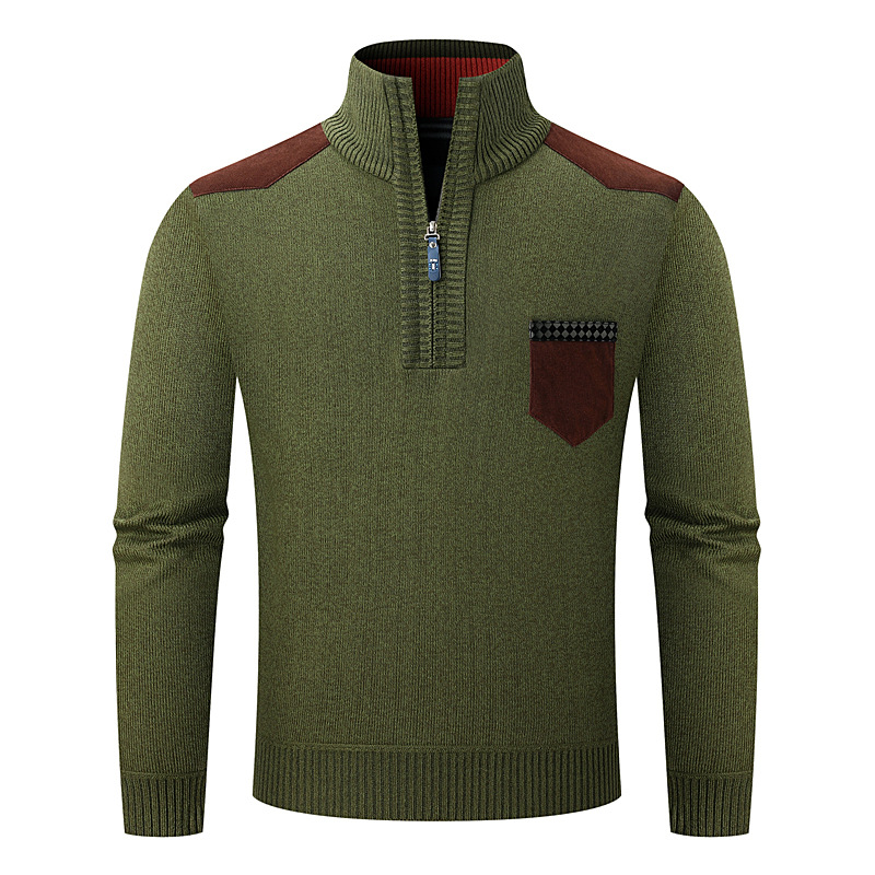 Suéter masculino de malha com forro de lã e meio zíper – Pulôver térmico respirável com gola alta