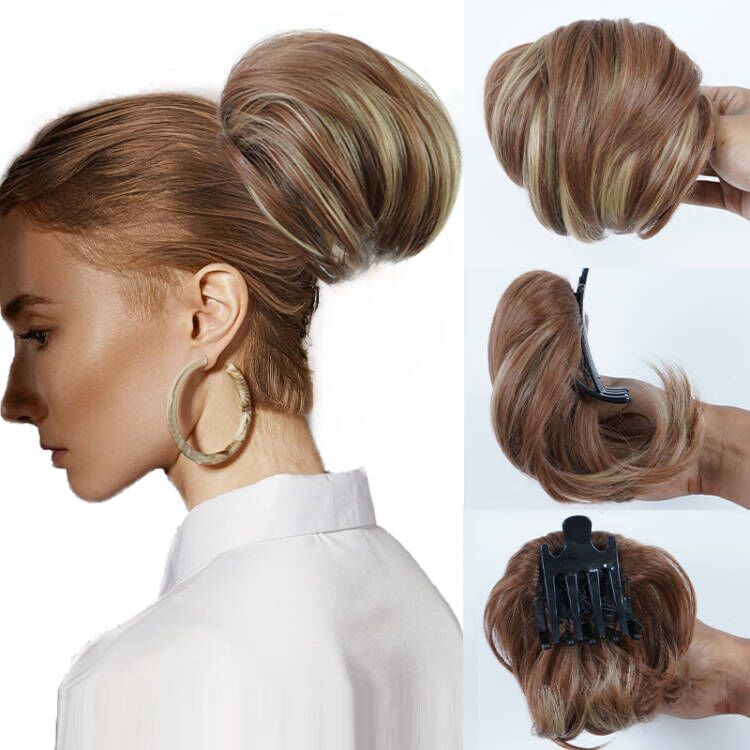 New style synthetic wig with inserted comb, short curly hair bun, ponytail headwear