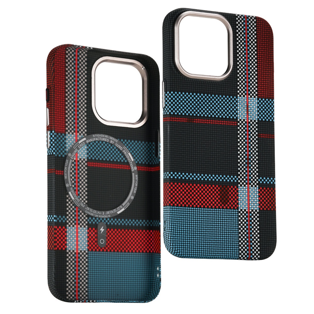Capa TechGlobe compatível com iPhone 16 Pro Max, magnética, em Kevlar com textura de fibra de carbono, para iPhone 15, com toque suave e resistente a impactos.