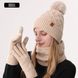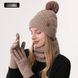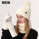 Gorro de malha de inverno para mulheres, veludo de camada dupla e gorro de malha quente e grosso, cachecol e luvas, conjunto de três peças