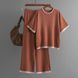 Top feminino de manga curta com gola e calças skinny caneladas com bordas em cores contrastantes, terno de duas peças em malha