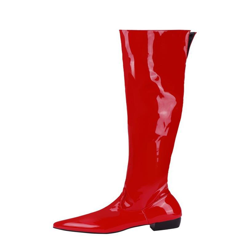 Botas femininas acima do joelho outono e inverno cross border candy color salto baixo couro envernizado zíper lateral cano alto botas de cano alto W389
